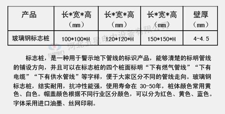 玻璃鋼標(biāo)志樁是一種用于警示地下管線的標(biāo)識產(chǎn)品,玻璃鋼標(biāo)志樁結(jié)實耐用,抗沖性能強,使用壽命長達(dá)30-50年。
