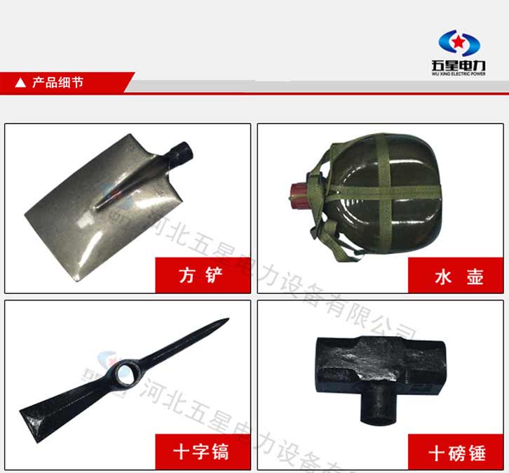 防汛組合工具包十一件套:鎬、鈀、鋤頭、十磅錘、砍刀、方鏟、電筒、警用分體雨衣、毛巾、水壺、頭盔。共用一條活動(dòng)柄。該組和輕便,工具配備齊全適用于救援隊(duì)員使用。