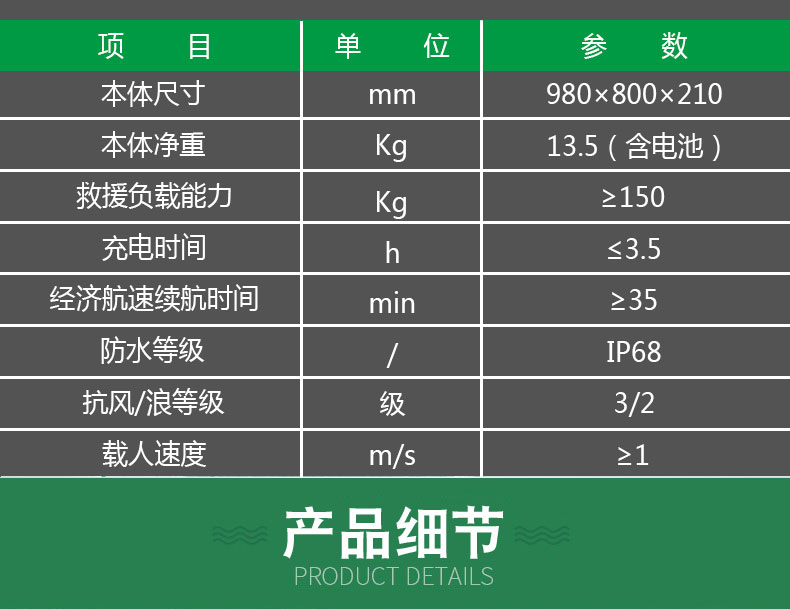 智能遙控救生器,外殼采用耐磨性、電絕緣性、韌性及耐寒性好的HDPE材料制作,適應(yīng)各種不同惡劣環(huán)境,目前搭配的動力系統(tǒng)是安全性很好的鋰電池集成系統(tǒng),使用安全,內(nèi)置9軸陀螺儀,可以識別姿態(tài)信息,自動切換左右,海浪沖翻后也能恢復(fù)姿態(tài)并保持航線運行。