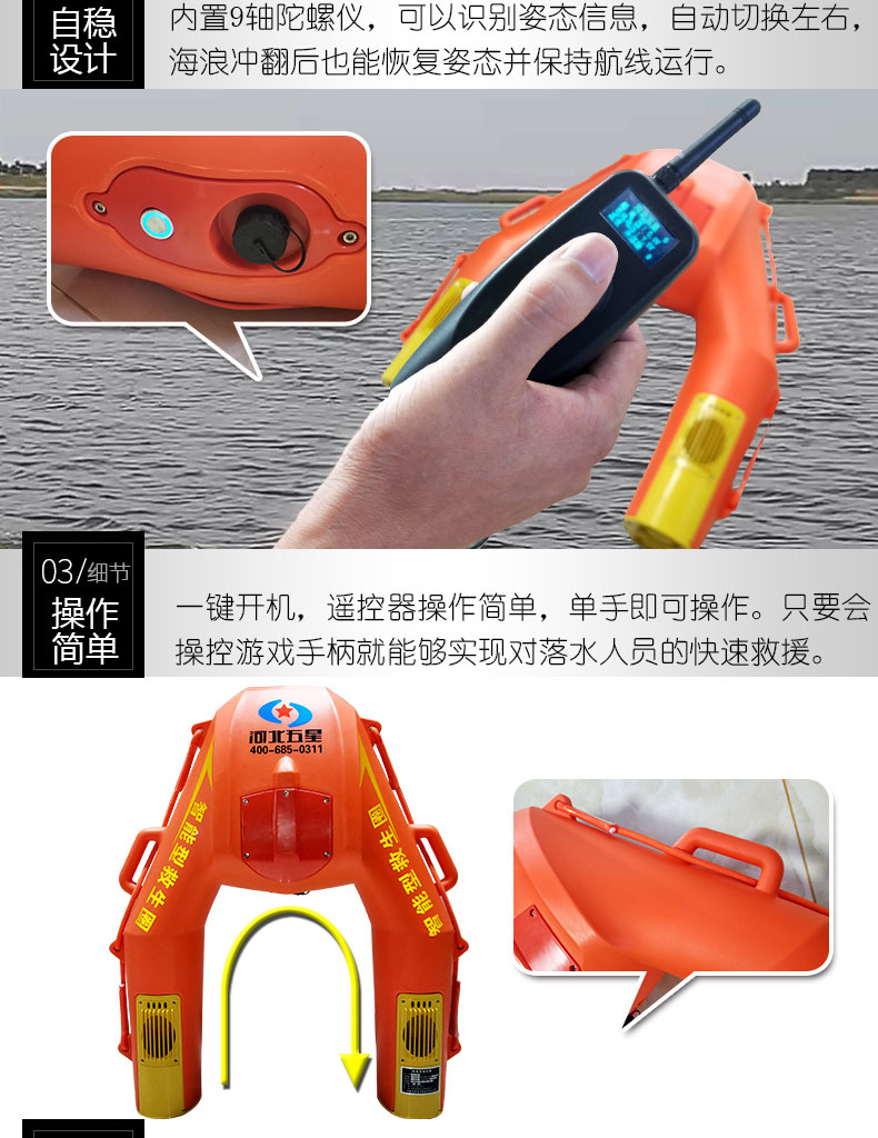 河北五星“霸王龍”WX-500型水上救生遙控機器人(智能型救生圈、智能型遙控救生圈)用于落水人員的救援,時速可達(dá)4米/秒,一旦碰到險情,會以很快的速度來到你身邊。智能型救生圈操作簡單,只要會操控游戲手柄就能夠?qū)崿F(xiàn)遠(yuǎn)距離、快速、精準(zhǔn)送達(dá),實現(xiàn)對落水人員的快速救援。