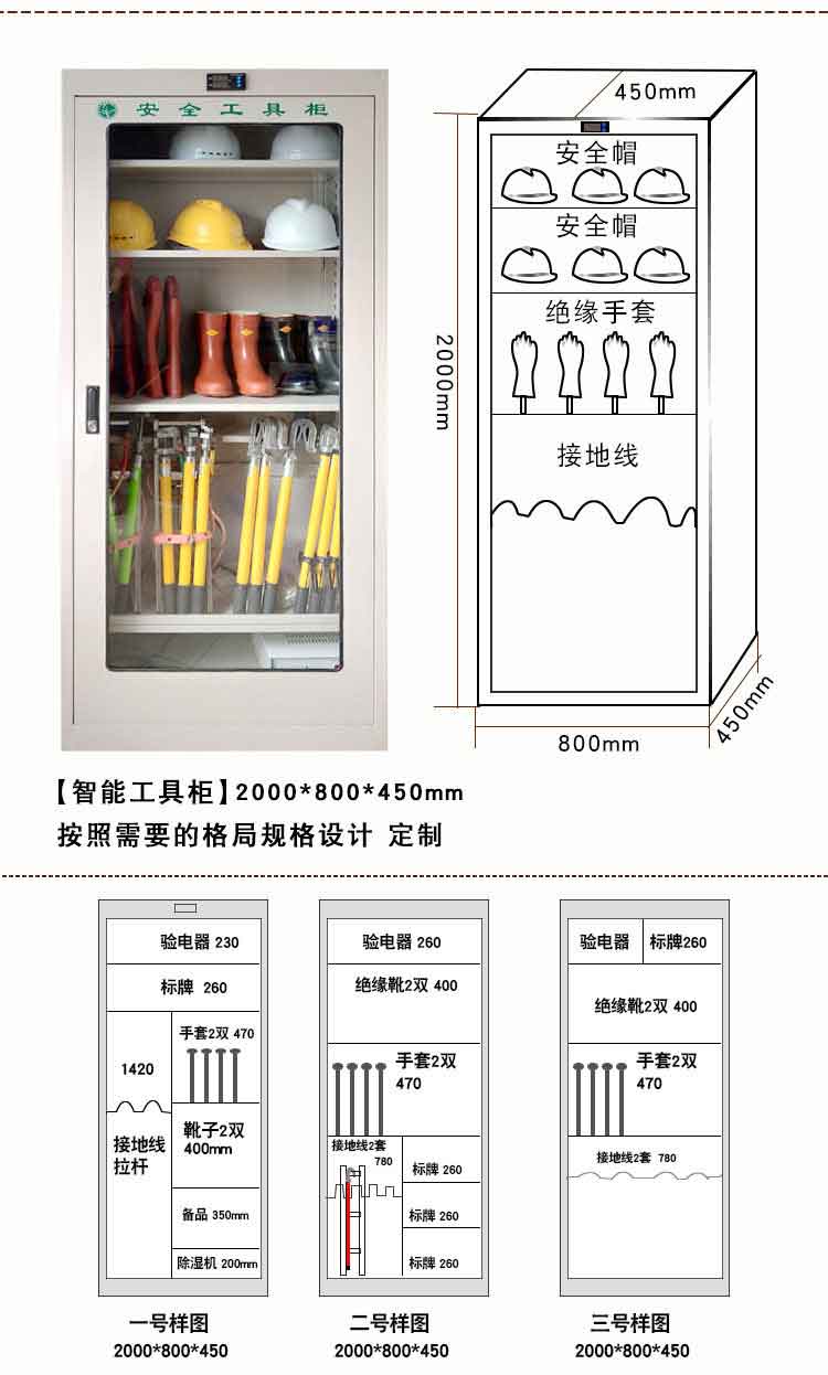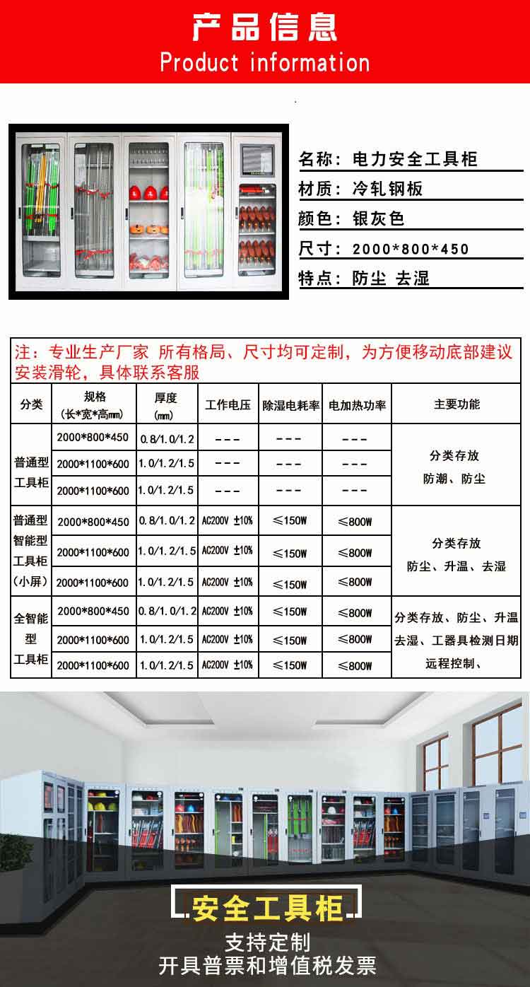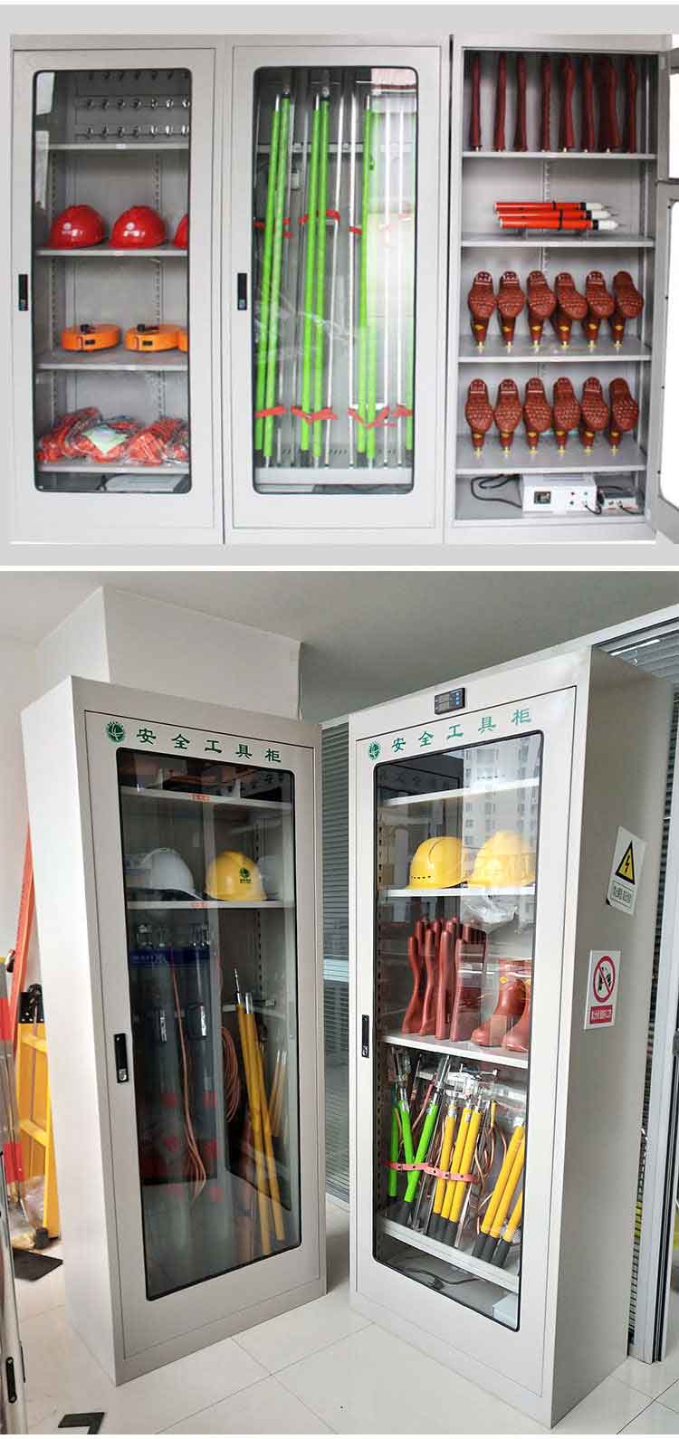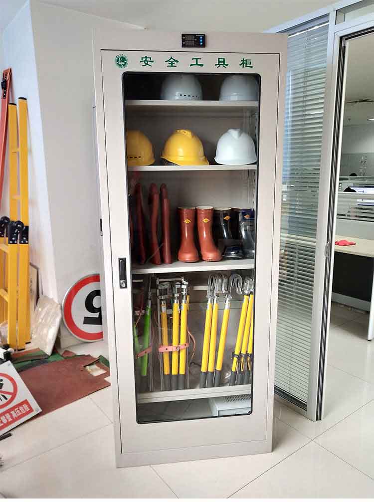 電力安全工具柜又稱(chēng)安全工器具柜,按功能可以分為普通排風(fēng)除濕柜,智能烘干除濕柜,智能抽濕除濕柜等 外殼選用1.2優(yōu)質(zhì)冷板,采用磷化鋅系、藝術(shù)型靜電噴涂,高強(qiáng)度鋼化透明玻璃(外觀色為微機(jī)灰)。接地線(xiàn)均配有接地線(xiàn)繞線(xiàn)架及帶夾反光編號(hào)牌,使接地線(xiàn)纏繞規(guī)范不易損壞,擺放整齊使用方便;絕緣手套配有防粘連撐板,絕緣擋板、絕緣棒、驗(yàn)電筆、操作桿均設(shè)有橡膠墊定位卡,安全帶、腳扣、鑰匙設(shè)有專(zhuān)用掛鉤,標(biāo)示牌按種類(lèi)分格放置,圍網(wǎng)配有專(zhuān)用包,網(wǎng)桿配有專(zhuān)用筒,網(wǎng)桿座分格放置,防毒面具配有專(zhuān)用箱,呼吸器設(shè)有專(zhuān)用滑板。廣泛應(yīng)用于各種電壓等級(jí)的變電站、集控站、線(xiàn)路工區(qū)以及電力公司客服中心等單位和部門(mén),并適應(yīng)不同溫濕度地區(qū)的使用。