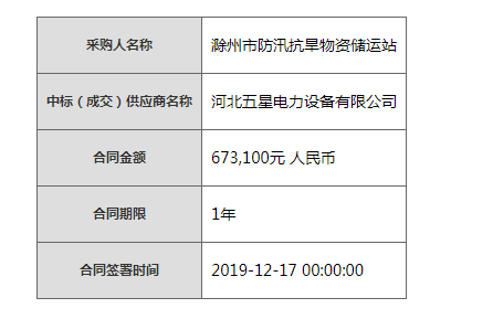 熱烈祝賀河北五星滁州市防汛抗旱物資儲運站2019年防汛抗旱物資一舉中標!