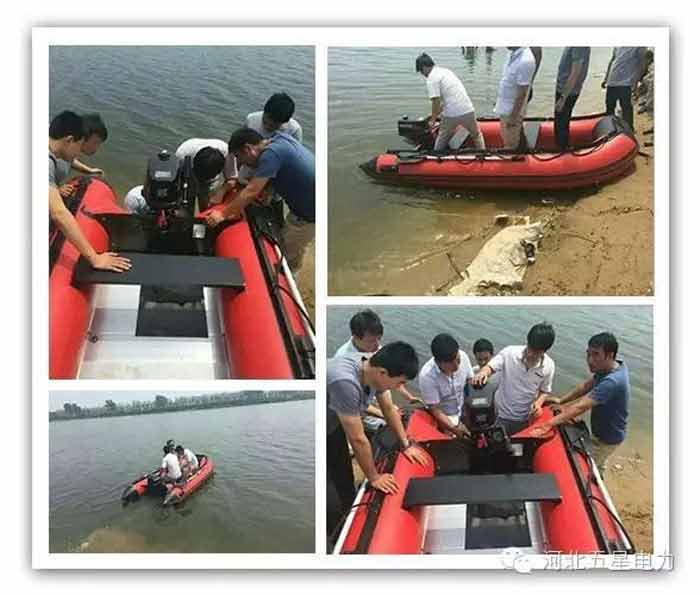 河北省一家水庫管理局從河北五星電力設備有限公司緊急采購15艘防汛搶險橡皮舟,河北五星“應急響應技術服務隊”三名隊員在客戶收到貨后,長途奔波數(shù)百公里,為客戶現(xiàn)場調(diào)試設備,免費提供操作技術培訓,受到客戶贊譽!